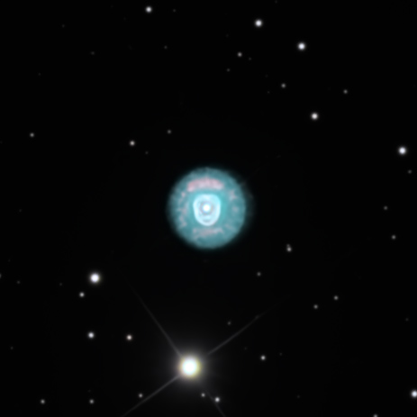 visual magnitude (9.1), its tiny size results in a very high surface brightness, making it a serious challenge to process. A "planetary nebula" (so called because the astronomer who first identified
