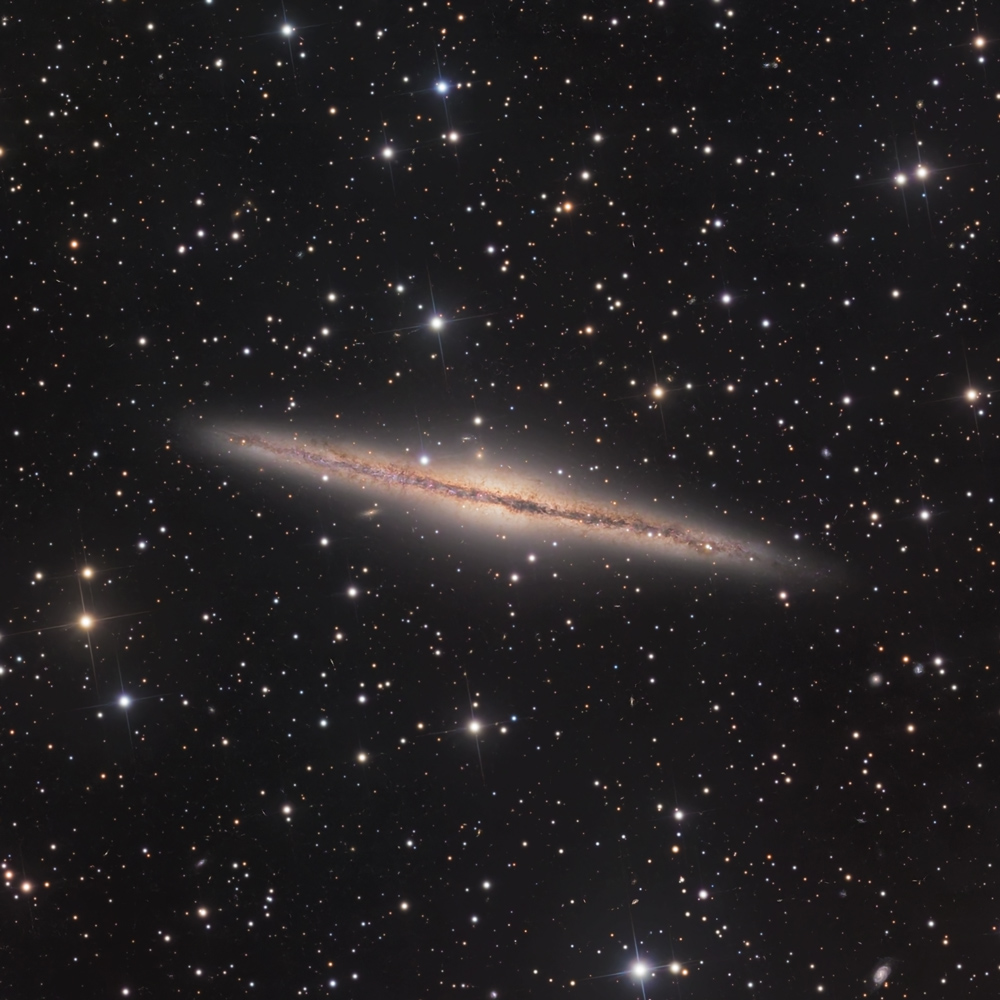 NGC 891 is a spiral galaxy visually located in the constellation Andromeda. It presents to