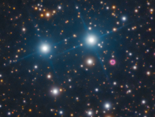 I was surprised and thrilled to see a tiny (about 7 arseconds across), bright red ring, obviously a planetary nebula, in the image. Alas, I was not the first to notice this