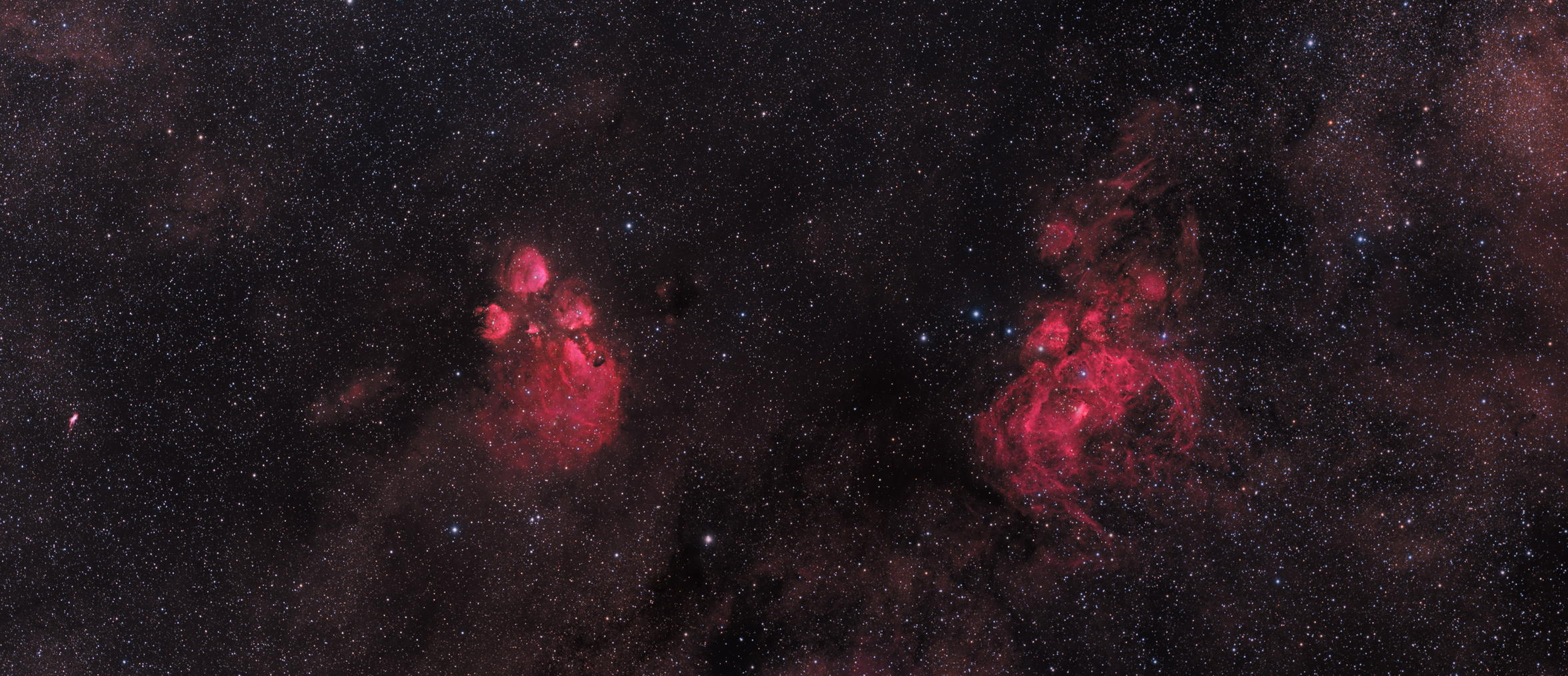 NGC6334 and NGC6357Cat's Paw Nebula and Lobster NebulaEmission Nebulae in Scorpio