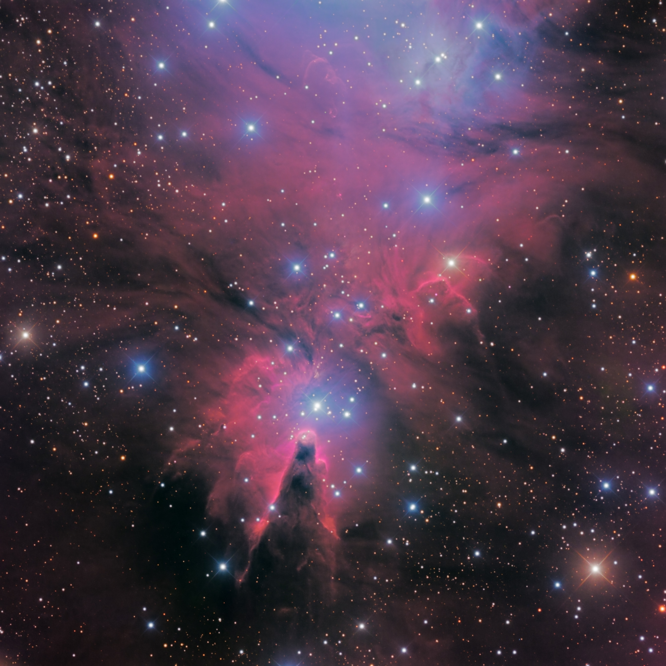 Emission Nebula, Reflection Nebula, Dark Nebula and Open Star Cluster in Monoceros
