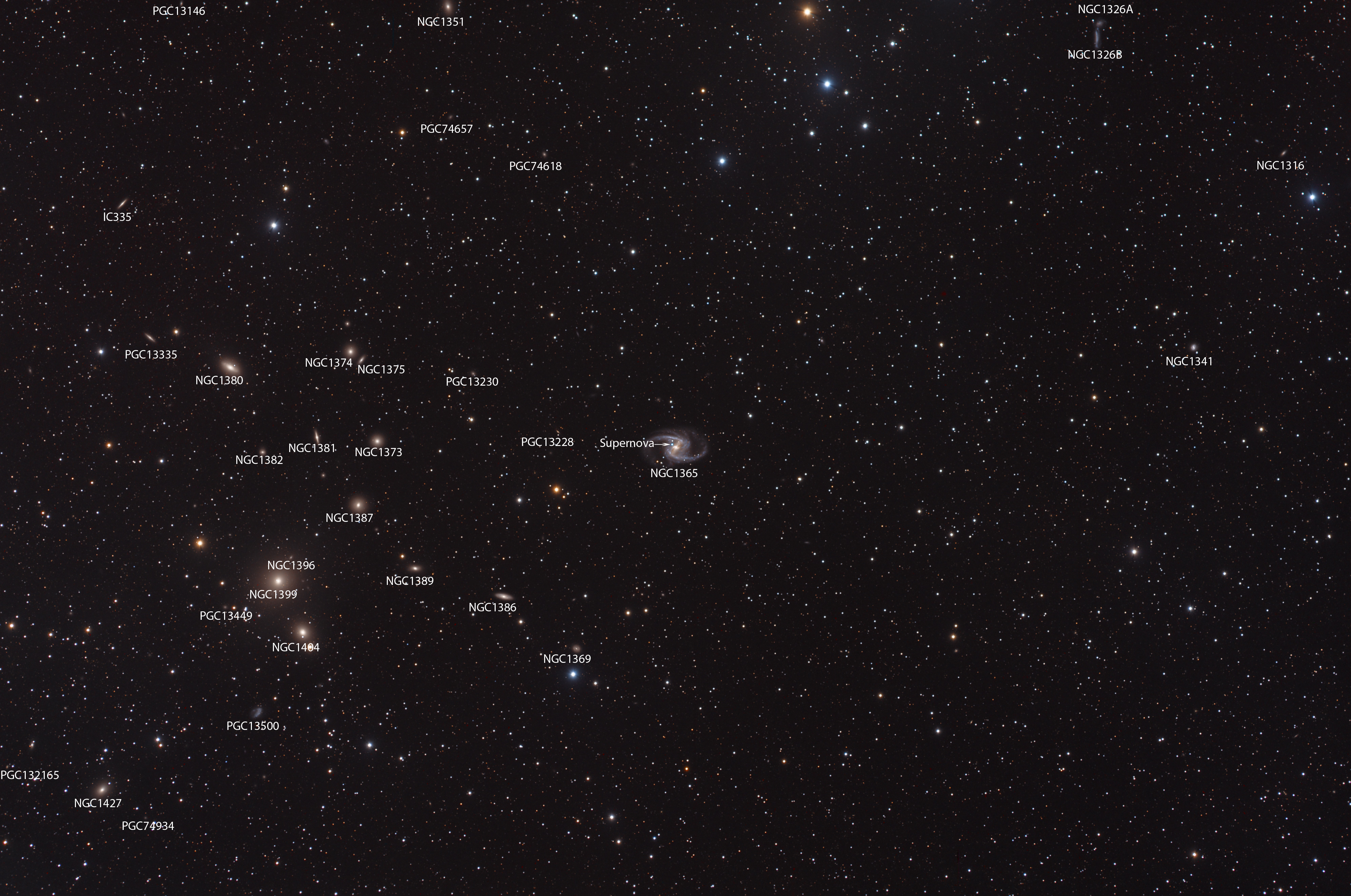| Galaxy IC335 NGC1316 NGC1326A NGC1326B NGC1341 NGC1351 NGC1365 NGC1369 NGC1373 NGC1374 NGC1375 NGC1380 NGC1381 NGC1382 NGC1386 NGC1387 NGC1389 NGC1396 NGC1399 NGC1404 NGC1427 PGC13146 PGC13228 PGC13230 PGC13355 PGC13449 PGC13500 PGC74618 PGC74657 PGC74934 PGC132165 |